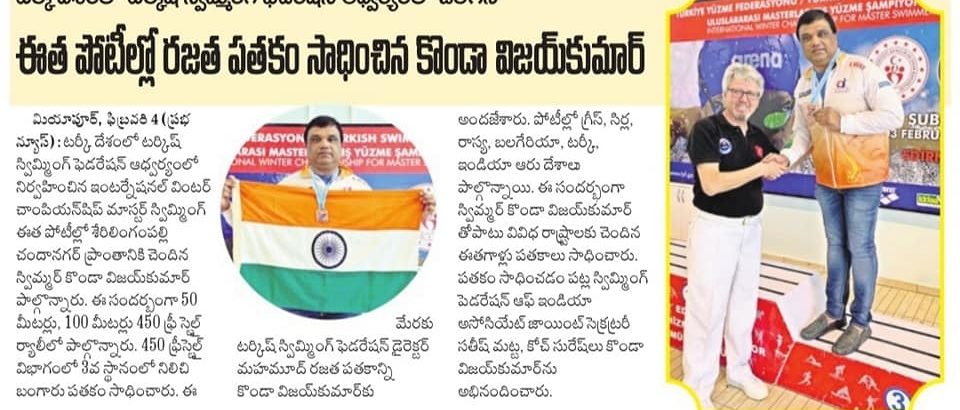 ఈత పోటీల్లో కాంస్య పతకం… February 12, 2019News & Eventsadmin What is your opinion? Click here to cancel reply. Name E-Mail Website Comment Submit Comment ← లింగంపల్లి ప్రభుత్వ పాఠశాలలో సన్మానం…. రాష్ట్ర వీరశైవ లింగాయత్ ఫెడరేషన్ మహిళ అధ్యక్షురాలు రుద్రమదేవికి జన్మదిన శుభాకాంక్షలు… →